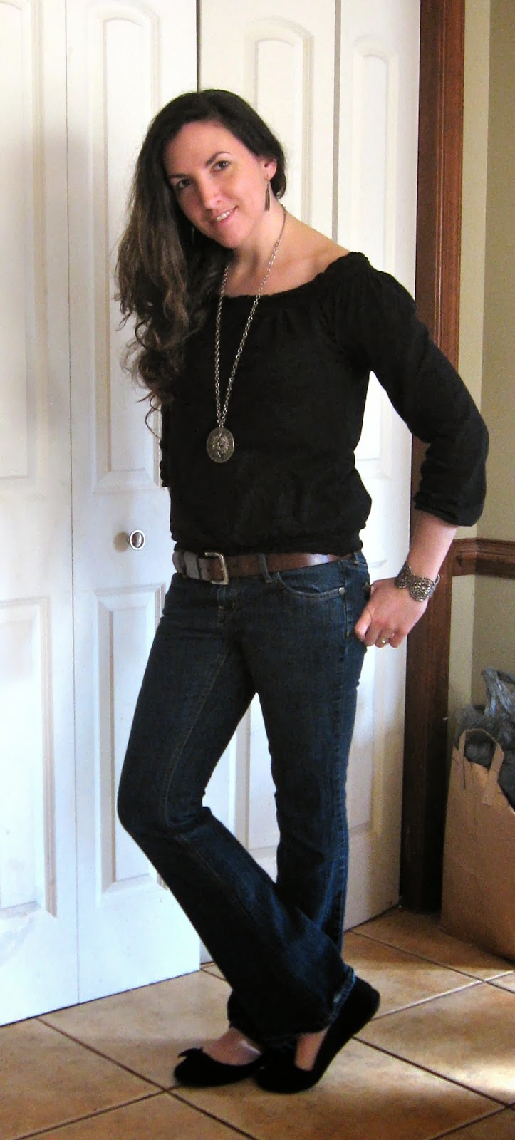 I wore this outfit on a day in January when it miraculously got over 50 degrees. This top is fantastic for that temperature, because the sleeves can go long or short, and the wide neckline and jersey knit cotton keep it cool.